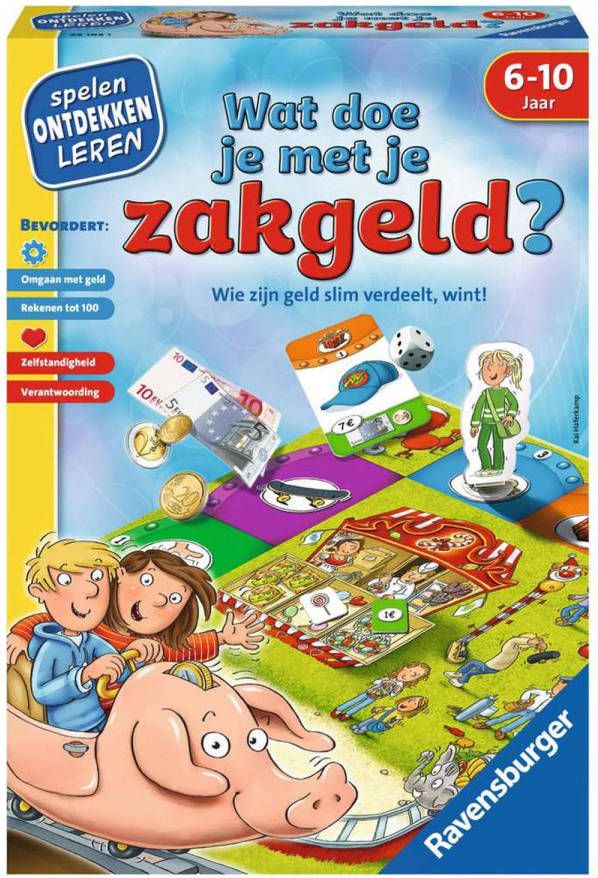 Wat wil jij allemaal doen als je zakgeld hebt gekregen? Iets lekkers halen, naar de kermis of wil je blijven sparen voor iets heel moois? Met het Ravensburger Spel Wat doe je met je zakgeld? leer je hoe je je zakgeld goed kunt gebruiken. Speel met de.