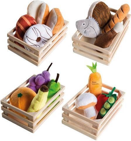 Deze 20-delige set van roba bestaat uit vier voedselgroepen en is een ideale aanvulling voor elke kruidenierswinkel en speelkeuken om spelenderwijs te leren omgaan met voedsel. De vier houten manden bevatten miniatuurvoedselartikelen van hoogwaardig Coral Fleece in vier verschillende voedselgroepen: Fruitmand: banaan, rode druif, peer en sinaasappel Groentemand: Erwt, champignon, tomaat en wortel Broodmand: Toast, broodjes, donut en zacht brood Mand overig: Biefstuk, worstjes, kippenbout en vis Deze bijzonder zachte speelset biedt een educatieve en realistische speelervaring voor diverse rollenspellen en is geschikt als peuterspeelgoed voor kinderen vanaf 3 jaar. Deze accessoireset voor winkels en keukens is in Duitsland ontwikkeld volgens de Europese veiligheidsnorm voor speelgoed EN 71. Alle gebruikte materialen zijn getest en gecertificeerd op schadelijke stoffen en zijn speekselbestendig en huidvriendelijk. Productdetails: M teriaal: Coral Fleece, hout Accessoires voor winkel van stof 20-delig Vier houten manden met levensmiddelen van Coral Fleece en viltmateriaal Fruitmand: banaan, rode druif, peer en sinaasappel Groentemand: Erwt, champignon, tomaat en wortel Broodmand: Toast, broodjes, donut en zacht brood Mand overig: Biefstuk, worstjes, kippenbout en vis Leeftijd: vanaf 3 jaar Let op! Niet geschikt voor kinderen jonger dan 3 jaar. Bevat kleine onderdelen die een verstikkingsgevaar opleveren.