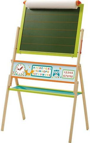 Dit prachtige houten bord maakt schoolplezier! Een praktisch opbergvak brengt orde in krijt, magnetische letters en poetsdoeken. Voor speels leren biedt het schoolbord een klok met beweegbare wijzers en een liefdevol ontworpen, gedrukt alfabet. Onder het bord bevindt zich een praktisch opbergvak. Met de producten van Roba kunnen kinderen hun wereld ontdekken en veel gezamelijke momenten met de familie beleven. Details: incl. klok met beweegbare wijzers, gedrukt alfabet met vos en uil Materiaal: Basismateriaal: Multiplex, materiaal 2: MDF, geschilderd Afmeting: 112 x 69 x 42 cm leeftijd: vanaf 3 jaar Let op Niet geschikt voor kinderen jonger dan 3 jaar. Verstikkingsgevaar wegens kleine onderdelen.